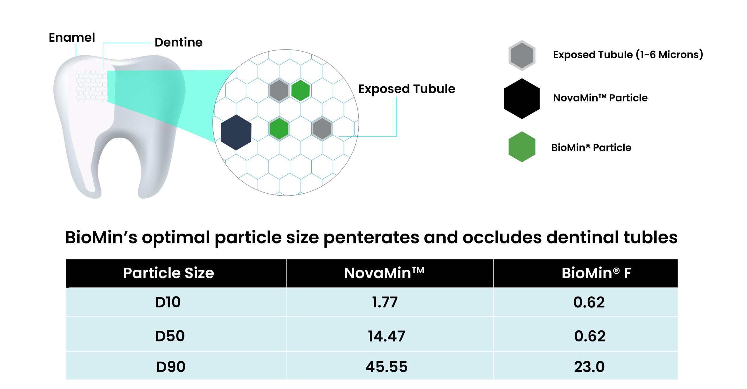 In studies, BioMin® F has been shown to reduce fluid flow within the tubules by up to 90%, resolving one of the primary causes of sensitivity
